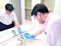 水垢、皮脂汚れ、石鹸カスなどの汚れが、様々なところに付着する浴室。ヌメリやカビが発生しやすい場所です。それぞれの汚れに合った洗浄剤を使い、床・壁・天井・鏡の隅々までピカピカにします。